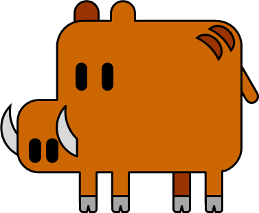 シンプルなイノシシ、猪のイラストです。十二支の干支の亥にもなっていますね。年賀用のイラストや野生動物の案内資料などにご活用ください。