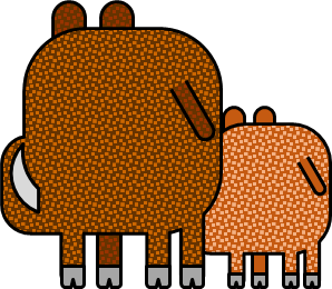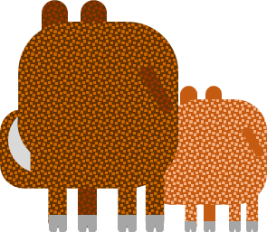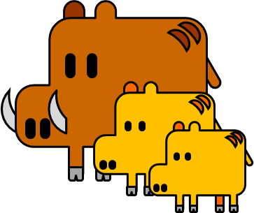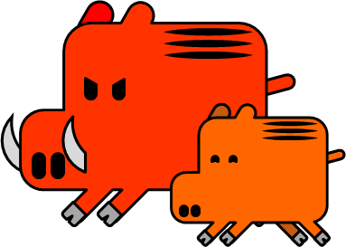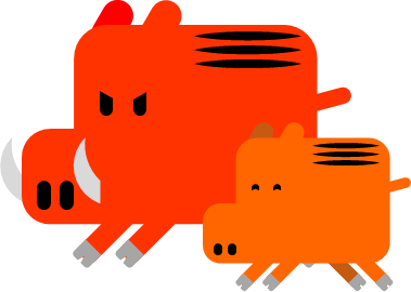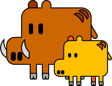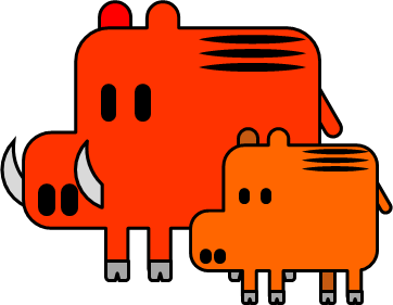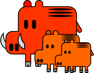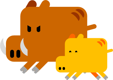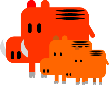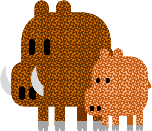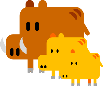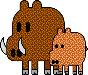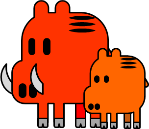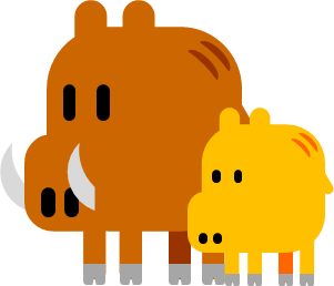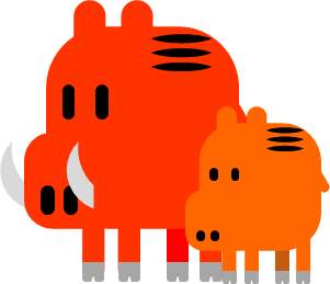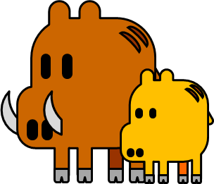 シンプルなイノシシ親子、猪親子のイラストです。十二支の干支の亥にもなっていますね。年賀用のイラストや野生動物の案内資料などにご活用ください。