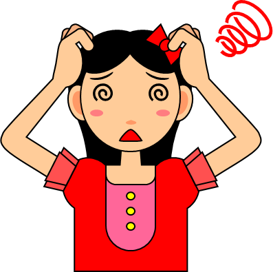 頭を抱えたり、頬をかいたりする困るしぐさの女子中学生、女子高生のイラスト画像です。困りごと、困惑、悩みなどのイメージにご活用ください。