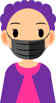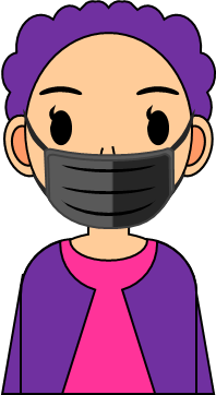 フリー、無料で使える黒いマスクをつけた女性のイラスト画像です。PNG32bit透明形式です。