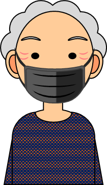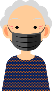 黒いマスクをつけた女性のイラスト、お年寄り、若い女性、フチ有りフチ無しなど6種類