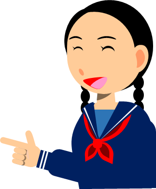 笑いながら小さく指を差す子供、女の子のイラスト、小学生、ソレな!のポーズ、前方へ指を差す、指摘する、フチ有りフチ無しなど6種類