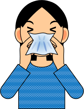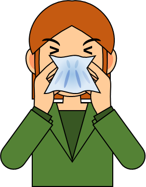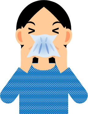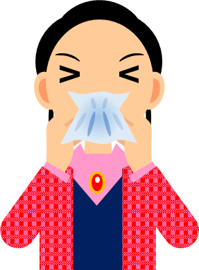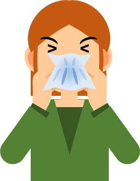 ティッシュペーパーで鼻をかむ女性です。風邪、鼻水などの鼻の不調、花粉症のイメージなどにご活用ください。