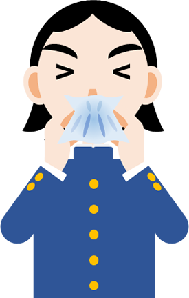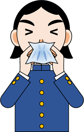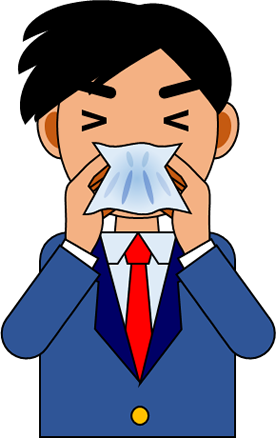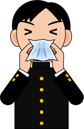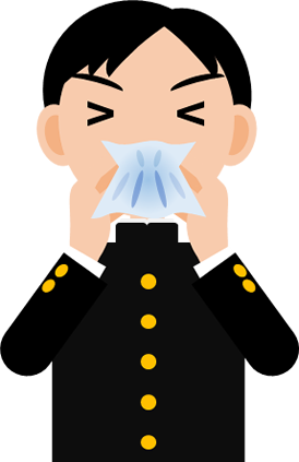 鼻をかむ子供、小学生、若い男性、男の子のイラスト、風邪、鼻づまり、花粉症、フチ有りフチ無しなど6種類