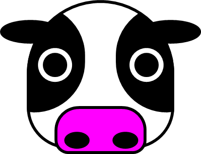 フリー、無料で使えるこっちを見るウシの顔イラスト画像です。PNG32bit透明形式です。