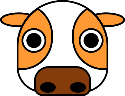 キャラクター風のウシの顔イラスト、こっちを見るウシ、各種品種やカラーなど6種類