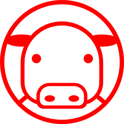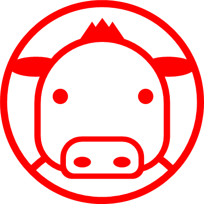 目が点になっているウシをスタンプ風にしたイラストです。驚きや呆れ、固まっているような感情を単純化した表現で伝えることができ、年賀状や会話のワンポイントスタンプとして便利です。シンプルな線と丸い目のアクセントで、視認性の高いデザインになっています。