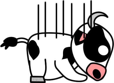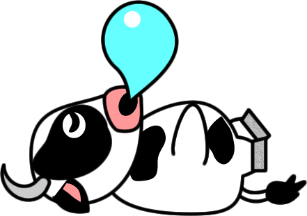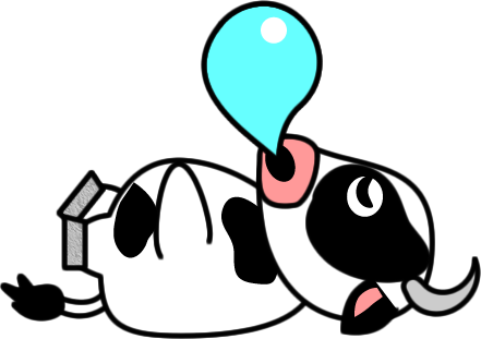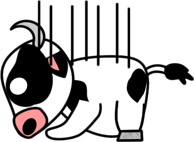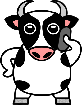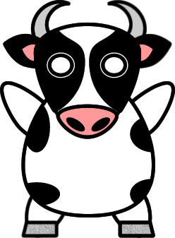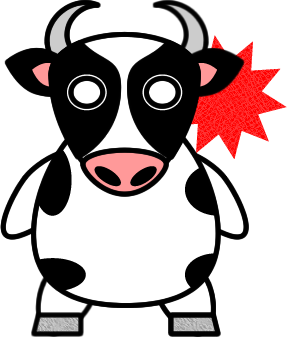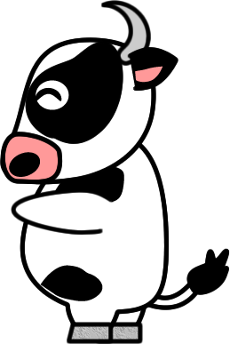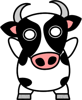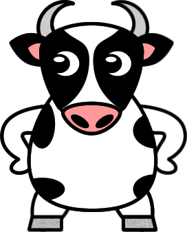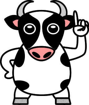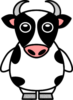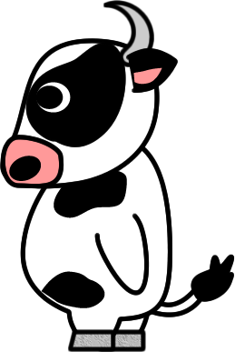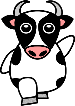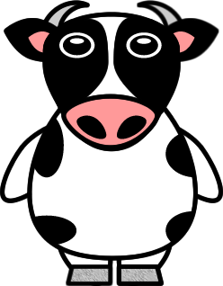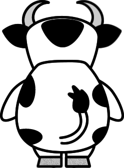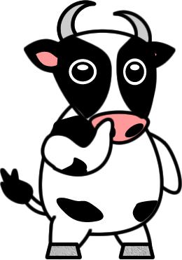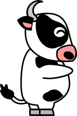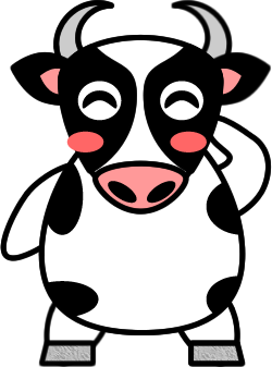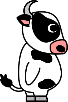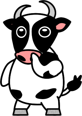 2足で立つウシ、乳牛、ホルスタイン、牛乳を手に持つ乳牛、驚く乳牛、指を差す乳牛、手を腰に当てる乳牛、電話をする乳牛、寝ている乳牛、、落ち込む乳牛、照れる乳牛、怒る乳牛、落ち込む乳牛、走る乳牛、後ろ姿の乳牛、横向きの乳牛など25点。