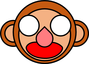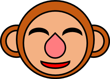 フリー、無料で使えるサルの顔のイラスト画像です。PNG32bit透明形式です。