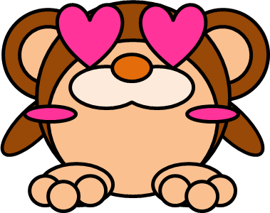 丸っこいサルのイラスト、猿のイラスト、申年、ハート顔、フチ有りフチ無しなど30種類
